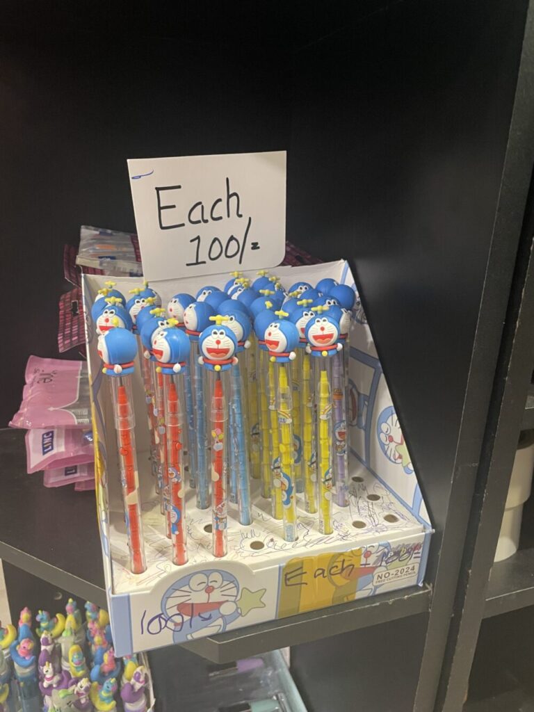 文房具エリアではドラえもんのペンがありました!
