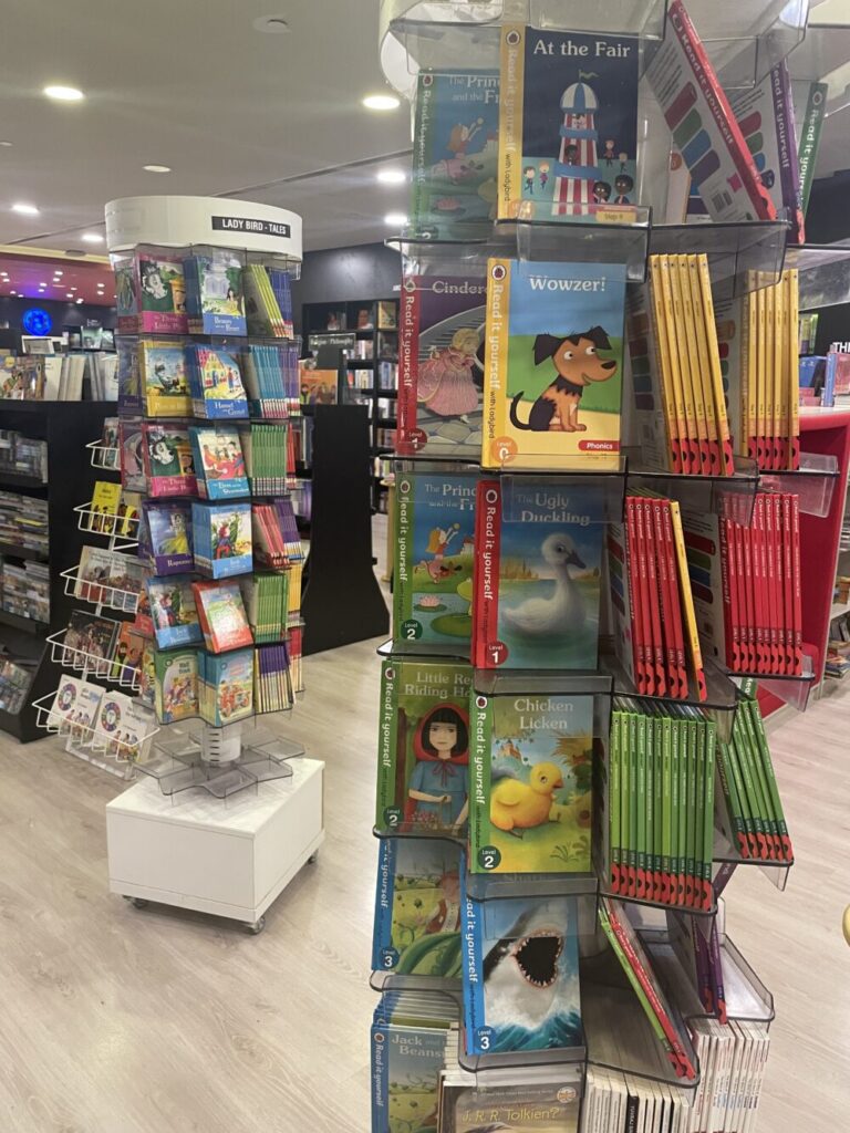 子ども向け本のコーナーは特に充実しており、勉強についての学習書や私たちの知っているような赤ずきんちゃんやシンデレラなどの童話も数多くあります。