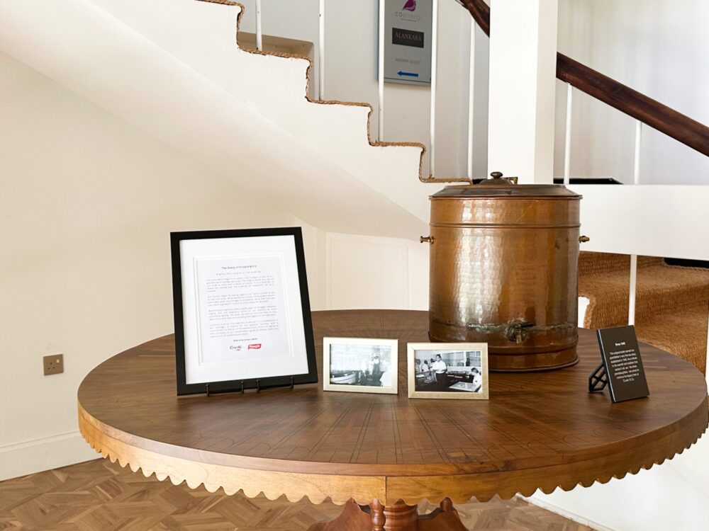 カフェの入口には1942年当時使用されていたボイラーが置かれており、小さなショップから始まった原点とおもてなしの心を、今に伝える象徴となっています。