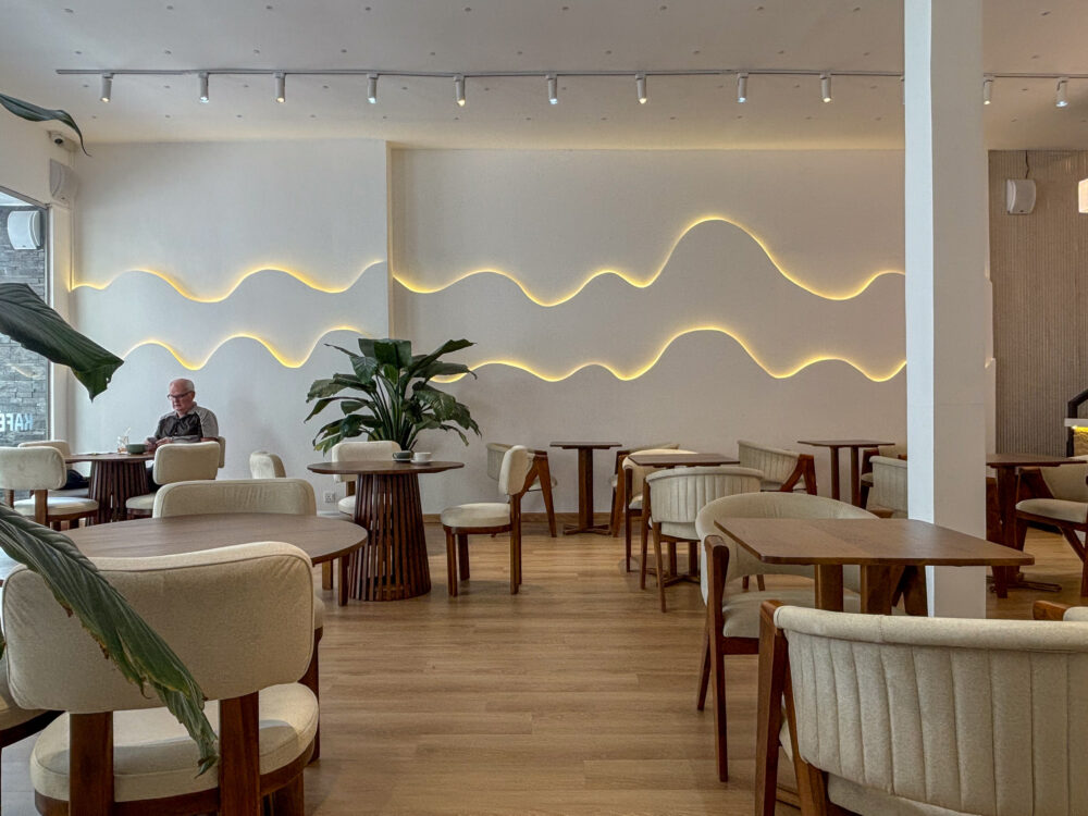 1つめにご紹介したカフェ Kiri Kōpi のすぐ隣にあるこちら、「Kai Colombo」は2025年8月にオープンしたカフェ。店内は明るく広々としています。週末などは生演奏していることも。