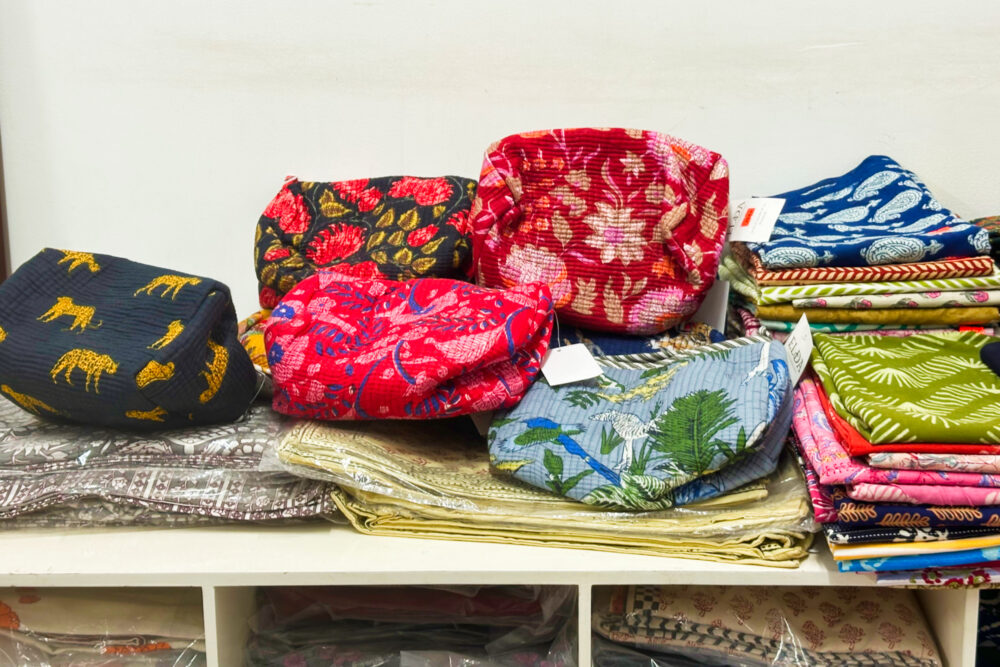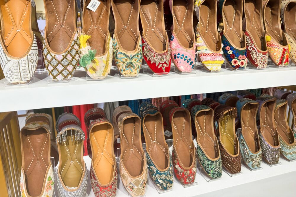 こちらはELDAとはまた少し雰囲気が変わり、ブロックプリントの服はもちろん、キラキラとした刺繍のバッグやアクセサリー、そして伝統的な靴などが並ぶ空間。お手頃な雑貨から本格的なアイテムまで揃っているので、ELDAでの余韻を楽しみながら、宝探し気分で覗いてみるのをおすすめします。