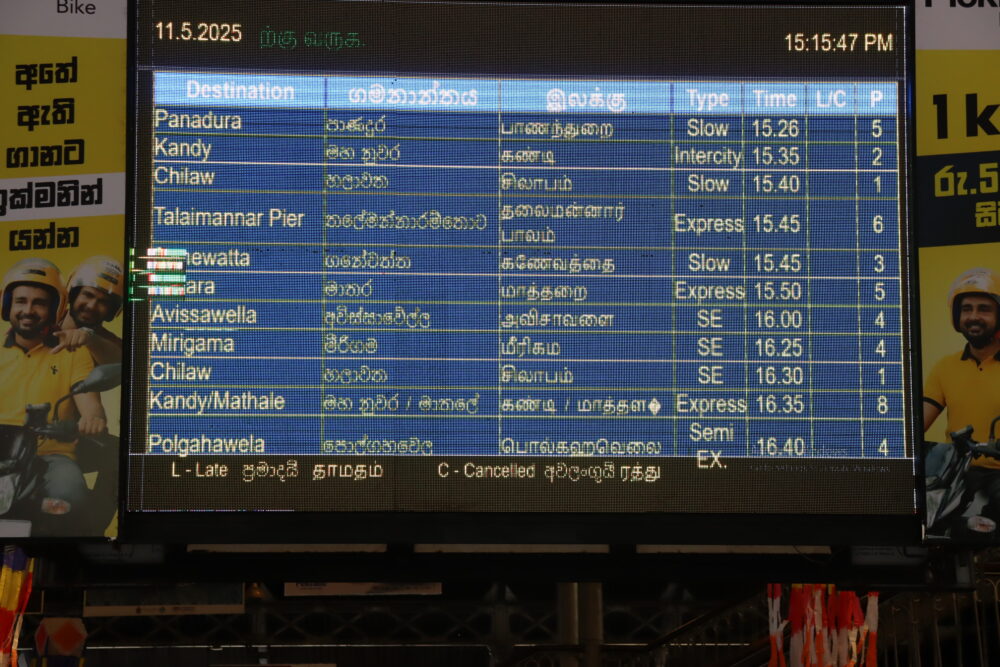 主にキャンディ行は2番ホーム、マウントラビニアやゴール行は5番ホーム、チラウ行は1番ホームから発車します。