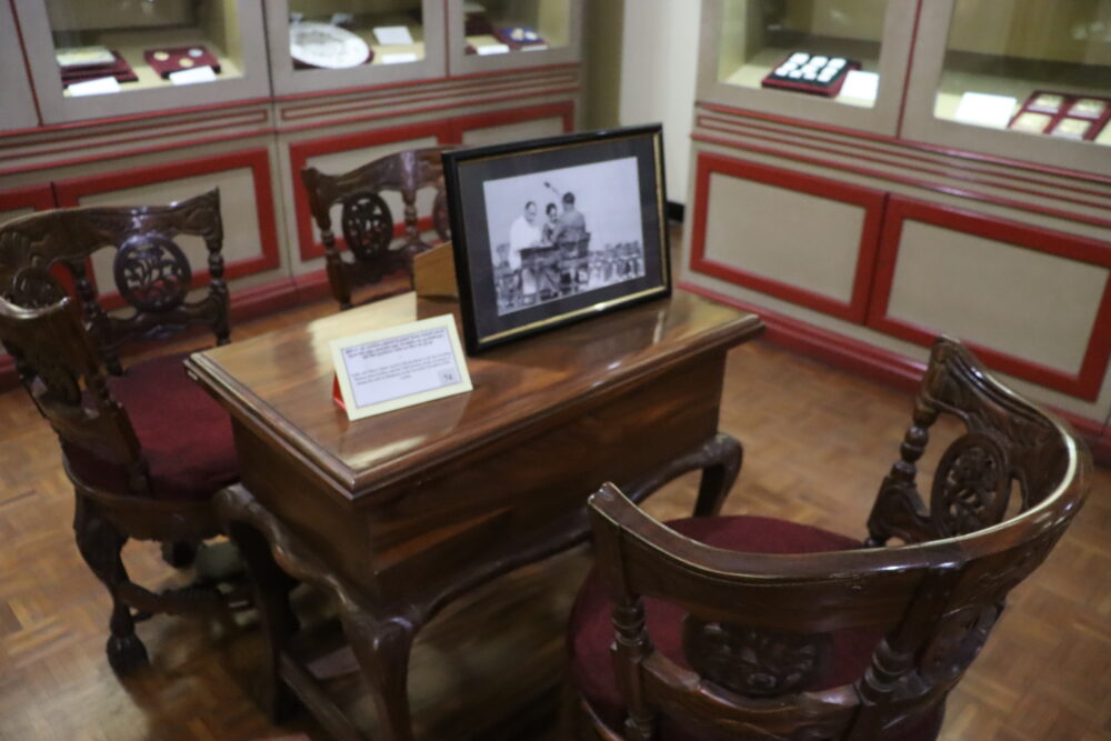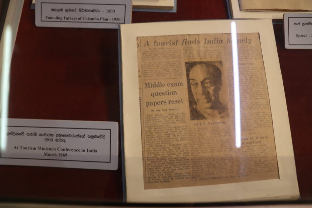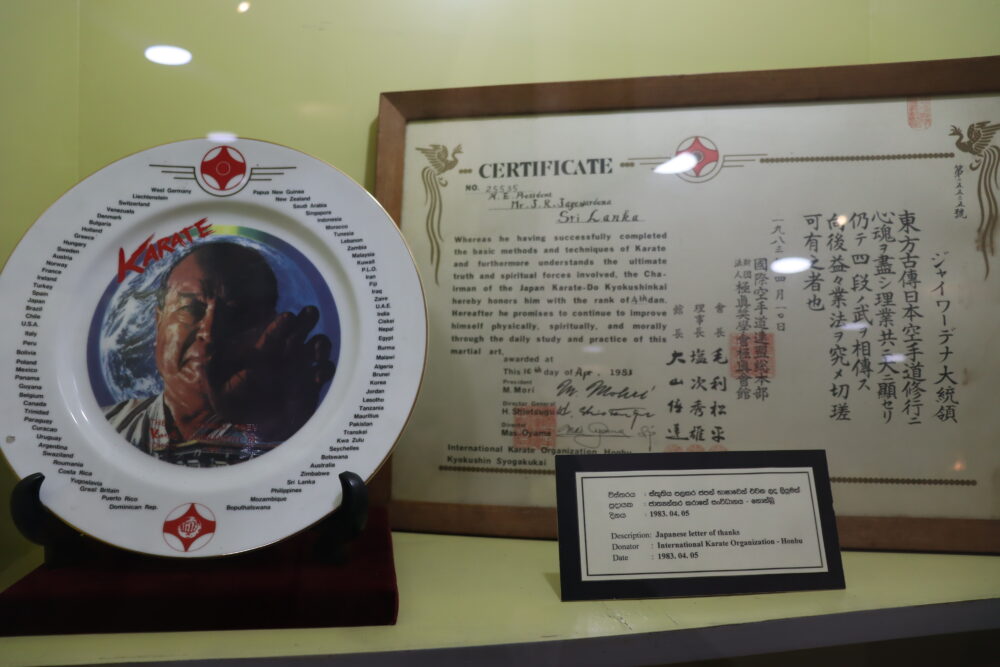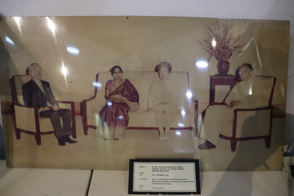 スリランカ共和国第10代首相に就任した後に、スリランカ共和国第2代大統領に就任し、行政大統領制を導入し、国号をスリランカ民主社会主義共和国に変更した後の最初の大統領に就任していますが、その就任時のサインをした際のテーブルと椅子が展示されています。