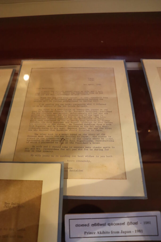 邸宅に裏に日本会館が建てられています。ジャヤワルダナ氏は日本に何度か訪れ、またスリランカで日本の皇室や政府関係者の受け入れおり、その際の記念品が展示されています。
