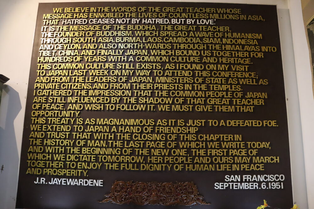 田中氏はサンフランシスコにおける平和条約でのジャヤワルダナ氏のスピーチへの感謝の印として寄贈したとジャヤワルダナセンターの公式サイトに紹介されています。
