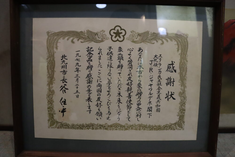 北九州市の「到津の森公園」にはセイロンゾウが2頭いますが、1977年生まれの雌のサリー、1978年生まれの雌のランの2頭のセイロンゾウがいますが、これは北九州市からのリクエストに対して、ジャヤワルダナ氏が受け答え結果のようです。