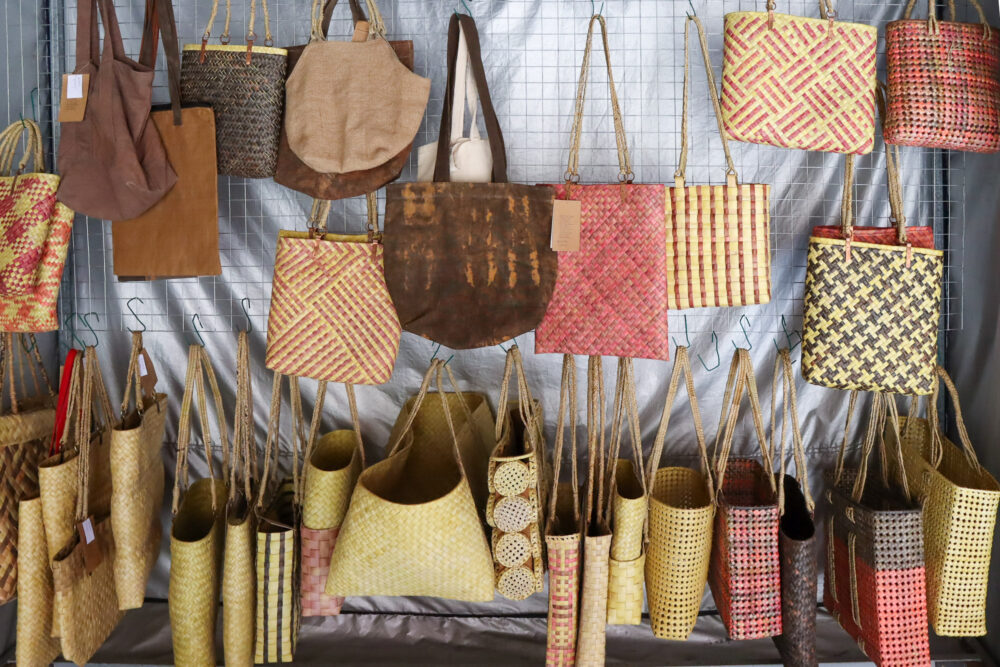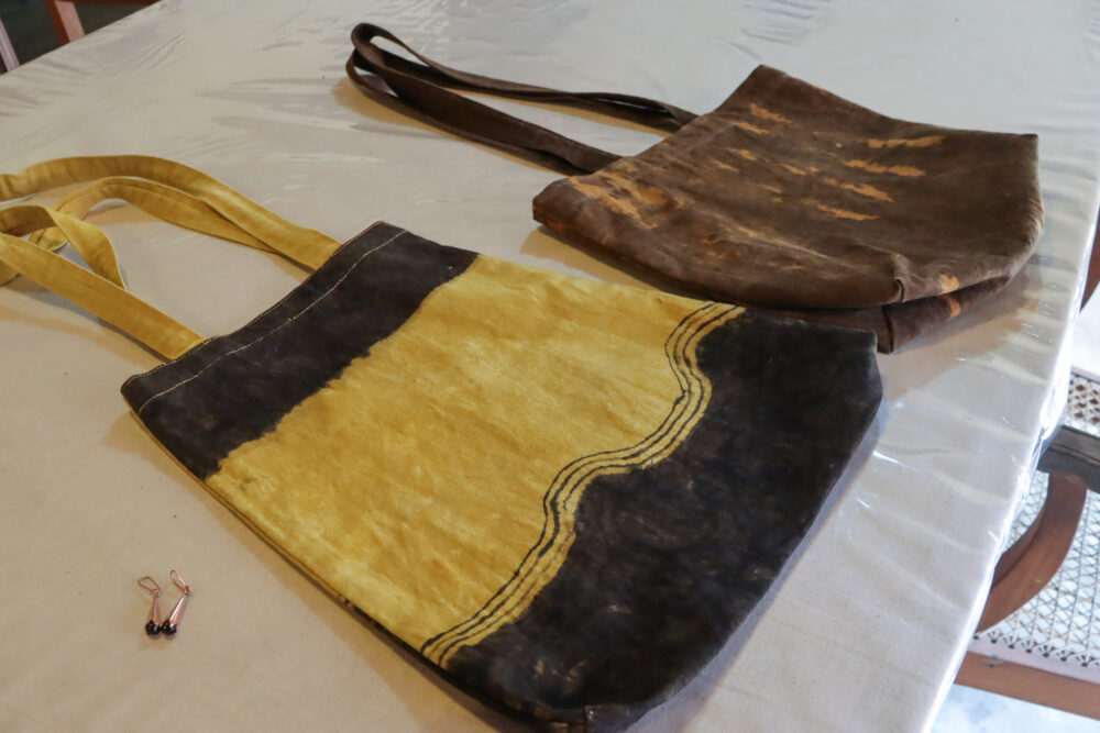 パルミラの葉やコットンを使ったデザイナーサリーやショール、バッグ、ジュエリーなど、どれも地域文化を反映した美しい手仕事の数々です。