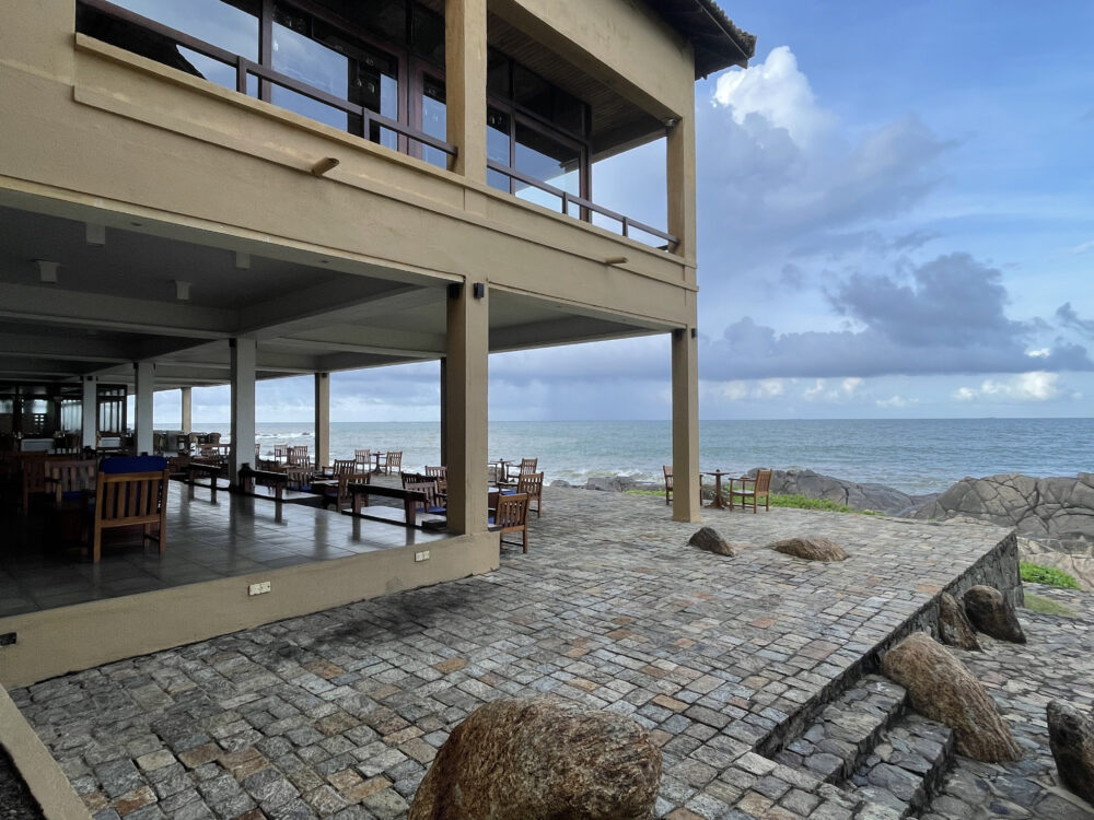 ホテルは、ゴールフォートの北西約3km、岩の岬に建てられており、コロンボから続く幹線道路(ゴールロード)と海に挟まれた立地です。南西モンスーンの風雨を正面から受ける場所にあります。