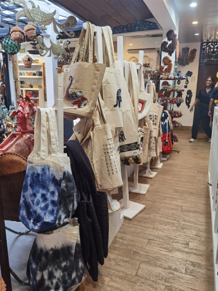 ここでは、シンハラ語やゾウのデザインが施されたバッグ、写真立て、マグカップなどが販売されています。スリランカらしさを感じる、ユニークな雑貨が揃っています。