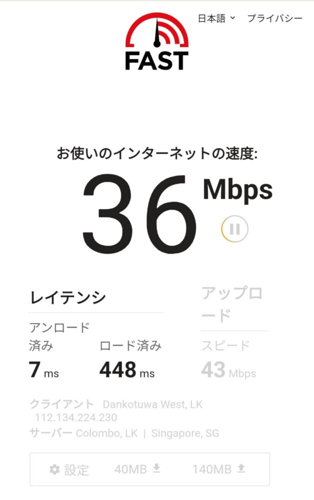 ある日のWi-Fiスピードは48Mbpsでした。日によっては画像の読み込みが遅いときもありますが、メッセージの送受信などは問題なかったです。