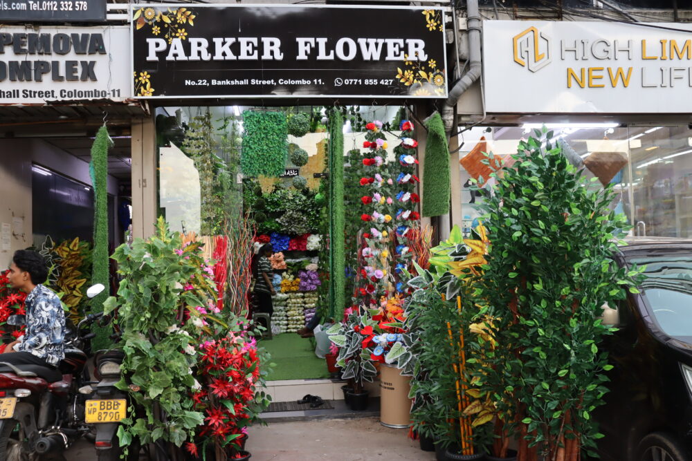 現在、バンクシャルストリートの西側には造花屋さんが並んでいます。