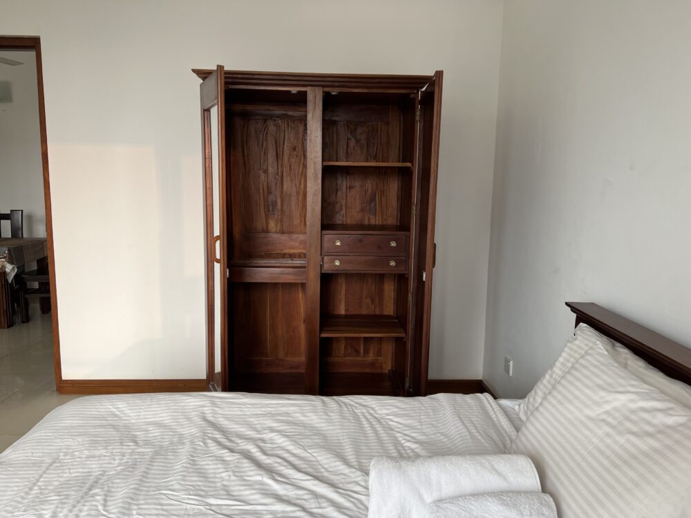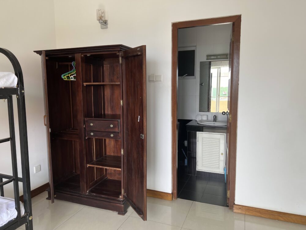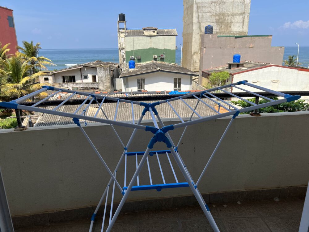 海に面しています。椅子と机、クローク、ドライヤー、洗濯干しがあります。
