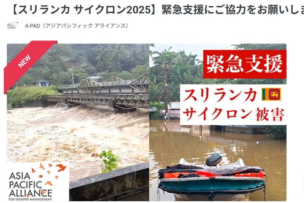 READYFOR:アジアパシフィックアライアンス(A-PAD)-【スリランカ サイクロン2025】緊急支援にご協力をお願いします