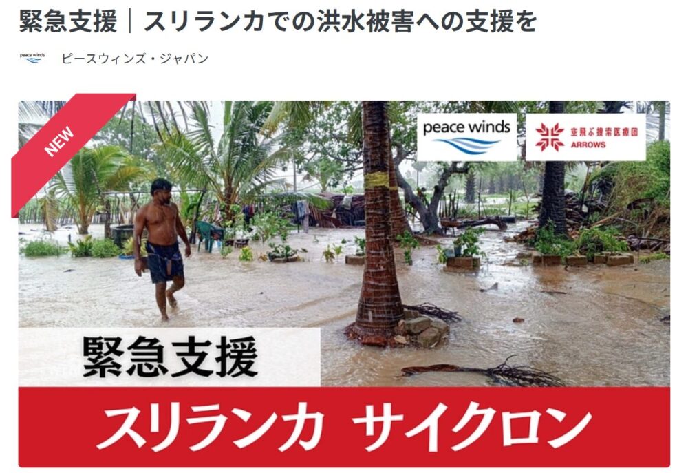 YAHOO!JAPANネット募金:2025年11月 スリランカ サイクロン緊急支援(ピースウィンズ・ジャパン)