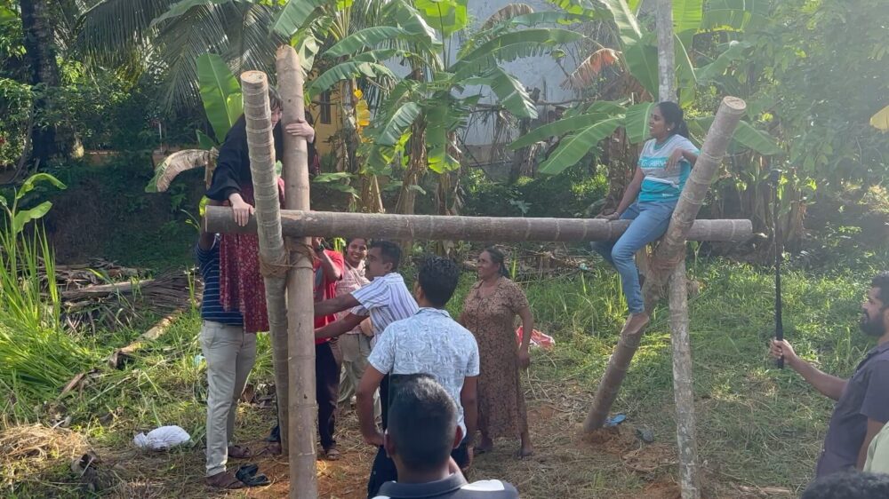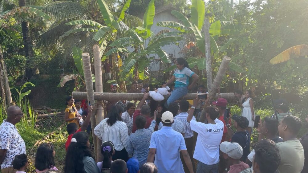 現地の方に動画を見せてもらって「スリランカのお正月にこんなことするんだ!」とびっくり。まさかその翌日、自分が丸太の上に立つことになるとは、このときは思ってもいませんでした。