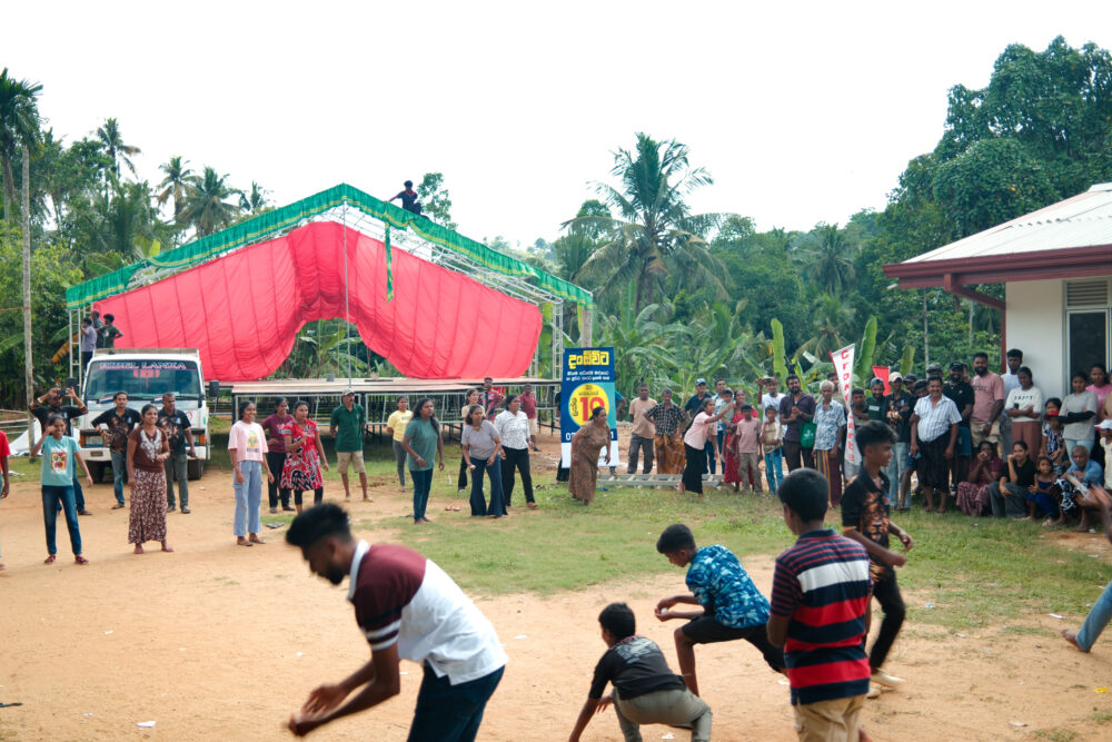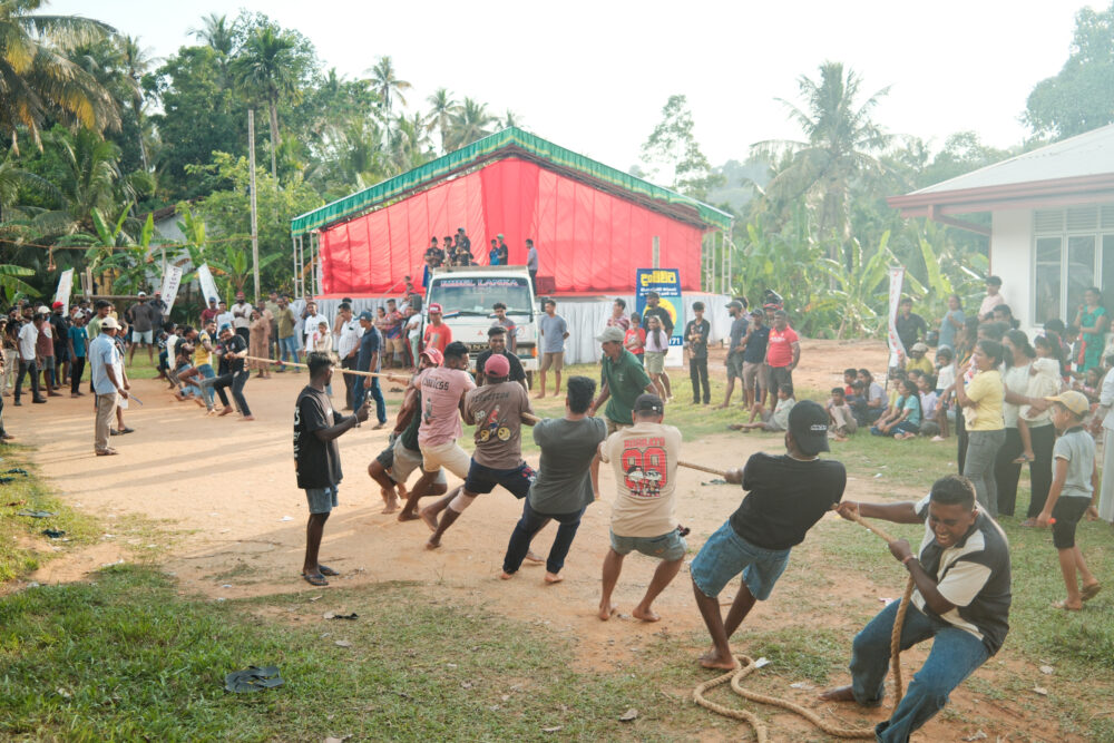 この時期、スリランカ各地では地区ごとに「お正月運動会」のようなイベントが開かれます。会場に到着すると、そこにはすでにたくさんの地元の人が集まり、伝統的なゲームを楽しむ熱気に包まれていました。