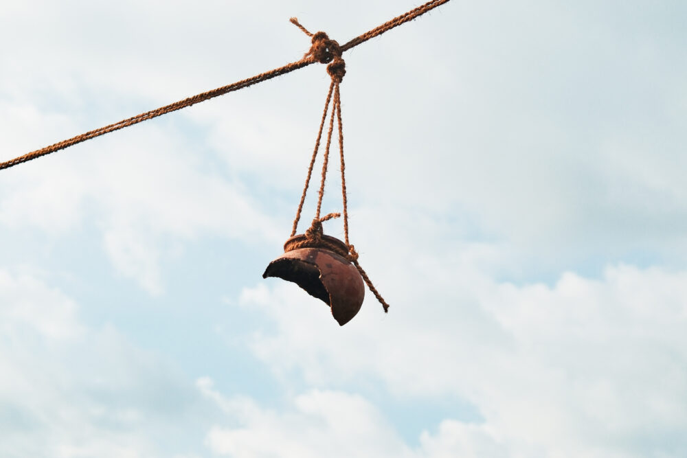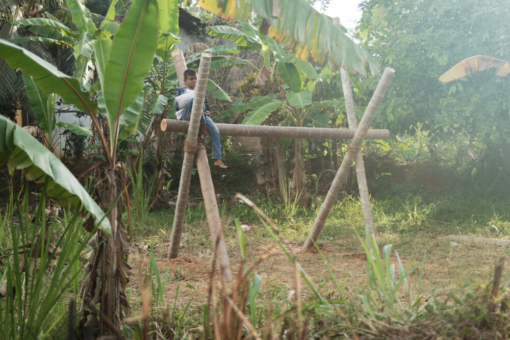 スリランカのお正月に行うのは、さらにサバイバル感の強いスタイル。丸太にまたがり、枕で相手を叩いて、叩いて、叩き落とす。落ちたら負け。シンプルだけど、なかなか激しい。