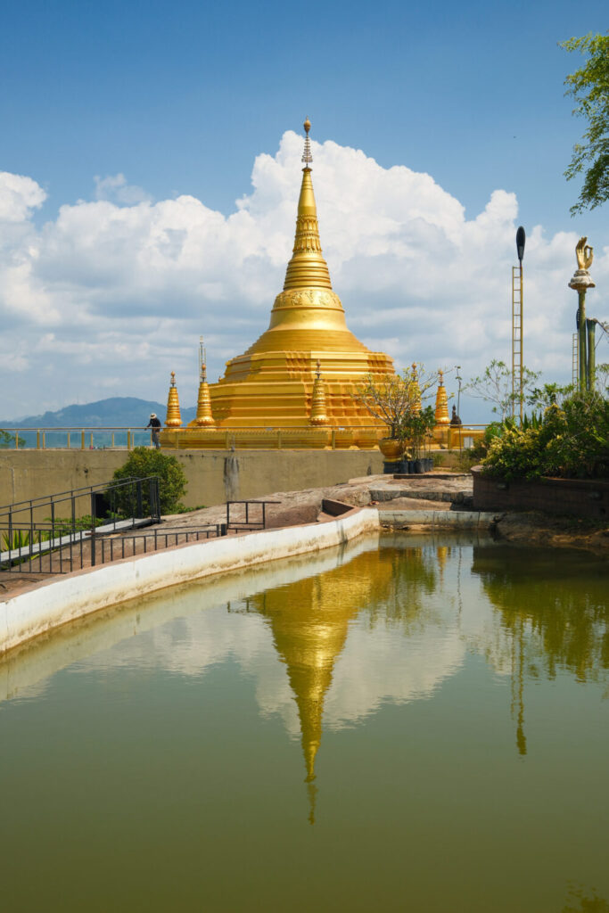 山頂を切り拓いた敷地には、青空に映える純白の仏塔、黄金に輝く仏像、そして見渡す限りの絶景が広がります。思わず「秘密にしておきたい!」と感じてしまう、そんな場所です。