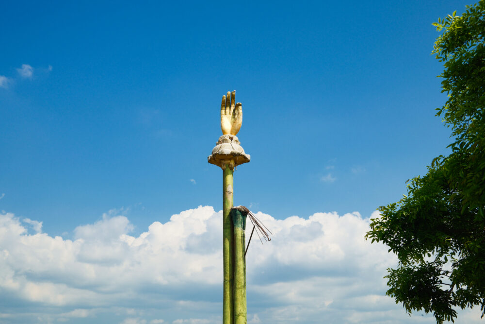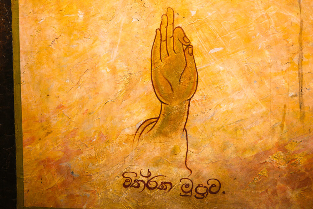 例えば指を立てた「ヴィタルカ・ムドラー(説法印)」は教えを説くポーズ、地に触れる「ブーミスパルシャ・ムドラー(触地印)」はお釈迦様が悟りを開いた瞬間を表すポーズ。