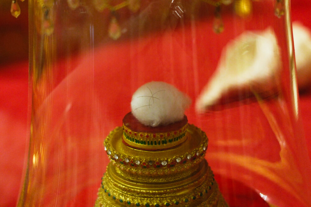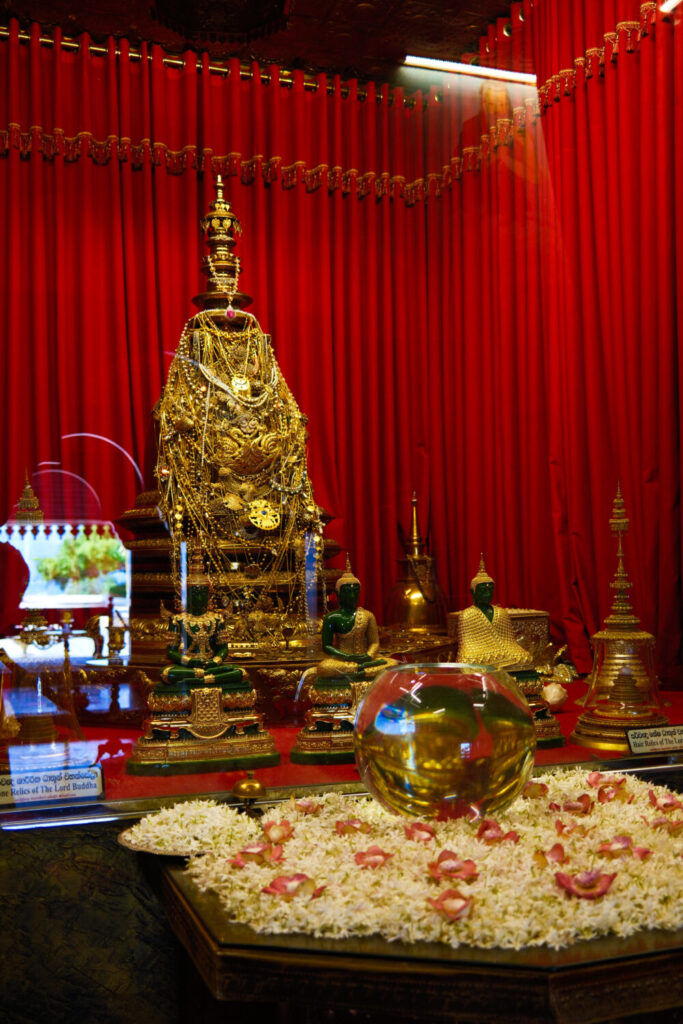 ここには仏陀の髪の毛と骨の遺物(仏舎利)、そしてお釈迦様のそばで教えを受けた高弟たちの遺物も一緒に祀られており、スリランカでも唯一無二の聖地とされています。毎日、お供え物(プージャ)をはじめとした儀式が朝・正午・夕方の1日3回行われており、仏陀の遺物を讃える伝統が今も丁寧に守られています。