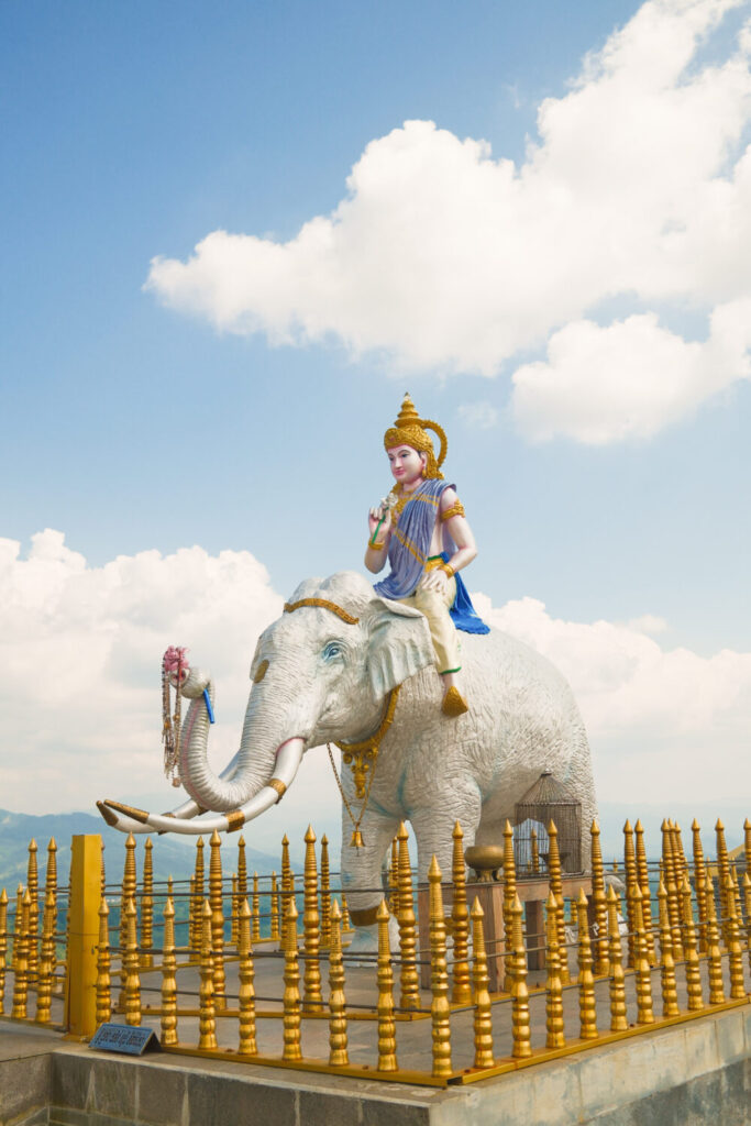 境内の一番奥に鎮座するのが、白い象に乗った「スマナ・サマン神」の像。