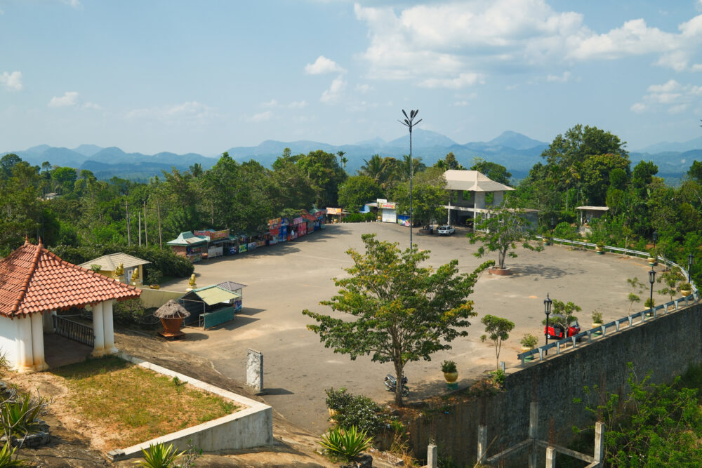 キャンディ市街から車・トゥクトゥクで約40分、ムルタラワ村の丘陵地帯を抜けると、突然視界が開けます。目に飛び込んでくるのは、標高771mを誇るネリガラ山の雄大な姿。その頂を切り拓いて建てられたのが、このネリガラ国際仏教センターです。