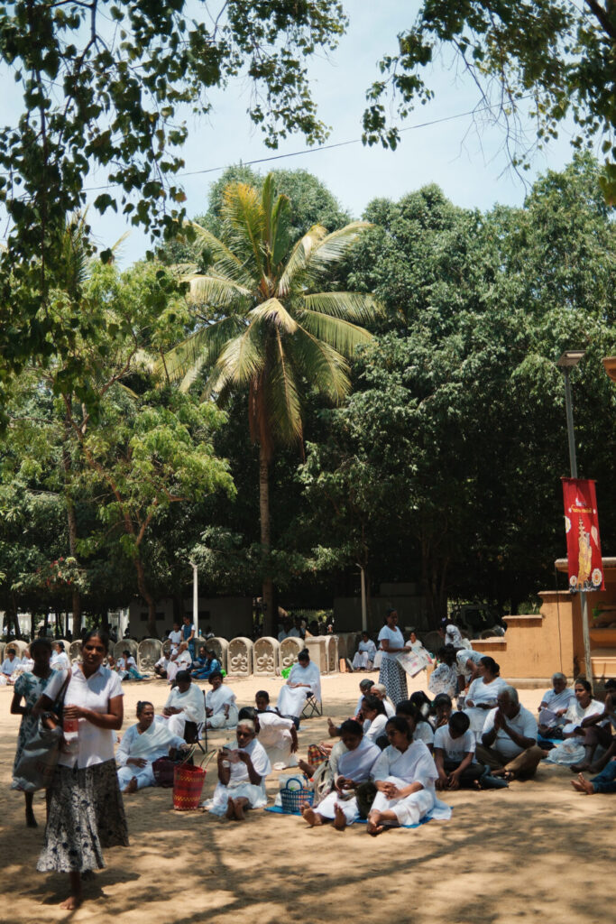 境内は朝早くから多くの人で賑わい、座ってのんびりしたり、周りの人とおしゃべりしたり、中にはお昼寝をしている人も。思い思いのスタイルで、ポーヤデーをゆったりと過ごしていました。一緒に行ったスリランカ人の友人は、日が落ちて真っ暗になるまで居たとのこと。