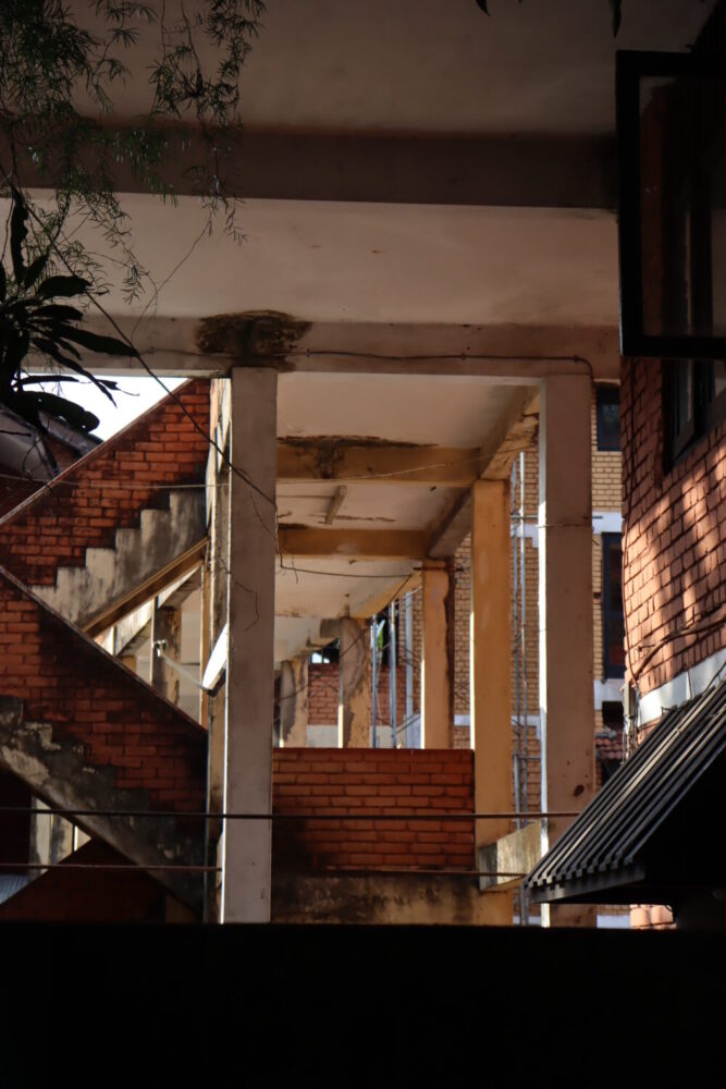 屋根瓦と大きな張り出しのあるレンガ積みの外装で、通風と日差し対策が十分に考慮されているといいます。