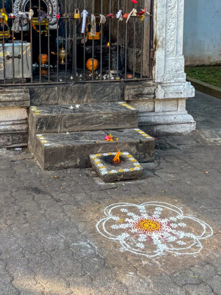 ヒンドゥー寺院(Kovil)やお店の玄関口、家の庭などで調理の様子を見かけます。