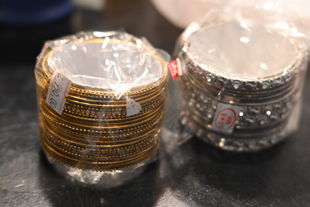手首用バングル(数本セット):ひとまとまりで約500〜1,500ルピー