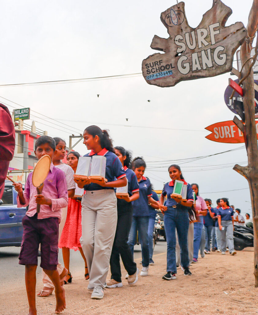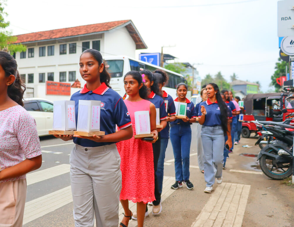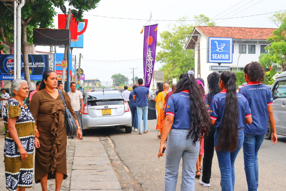 行進の出発点は、国道2号線(A2)とボナヴィスタロード(日本山妙法寺へ続く道)が交わる交差点。午後4時、浅見上人、ヒロシャンさん、来年から日本へ留学予定だという同校の生徒たち、ゴールやヒッカドゥワ在住の日本人とその家族などが静かに集った。
