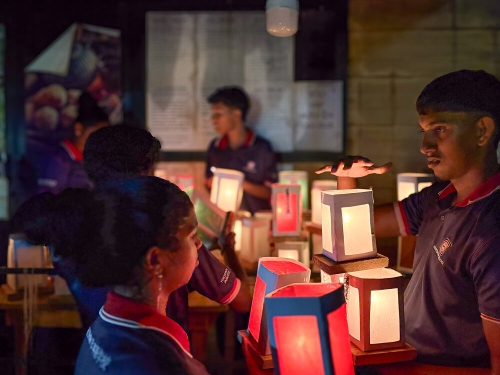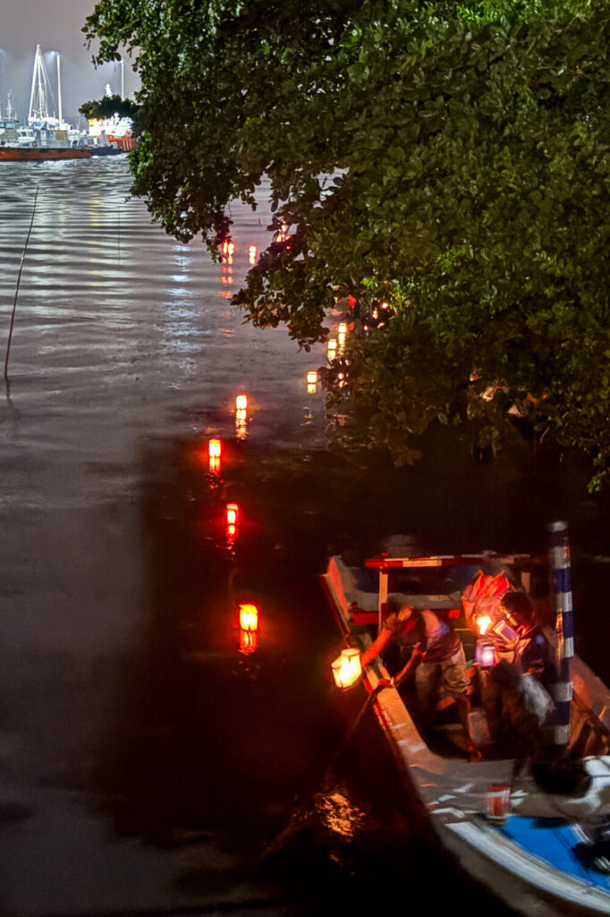灯篭は前日と当日の朝、日本語学校の生徒たちやゴール在住のJICA海外協力隊員が一つひとつ手作りしたものだ。夜の川を静かに流れ、やがてゴール港の方へ向かう灯篭の光は、幻想的で美しかった。