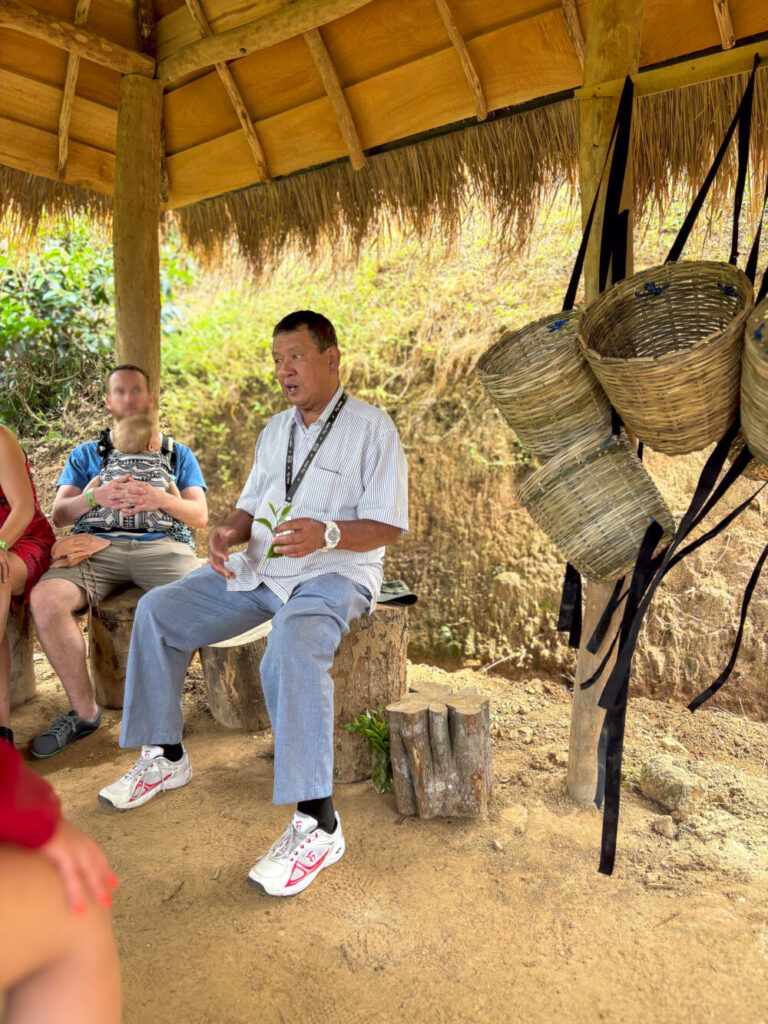 ①紅茶畑の中にある小屋で紅茶の基礎知識を学ぶ