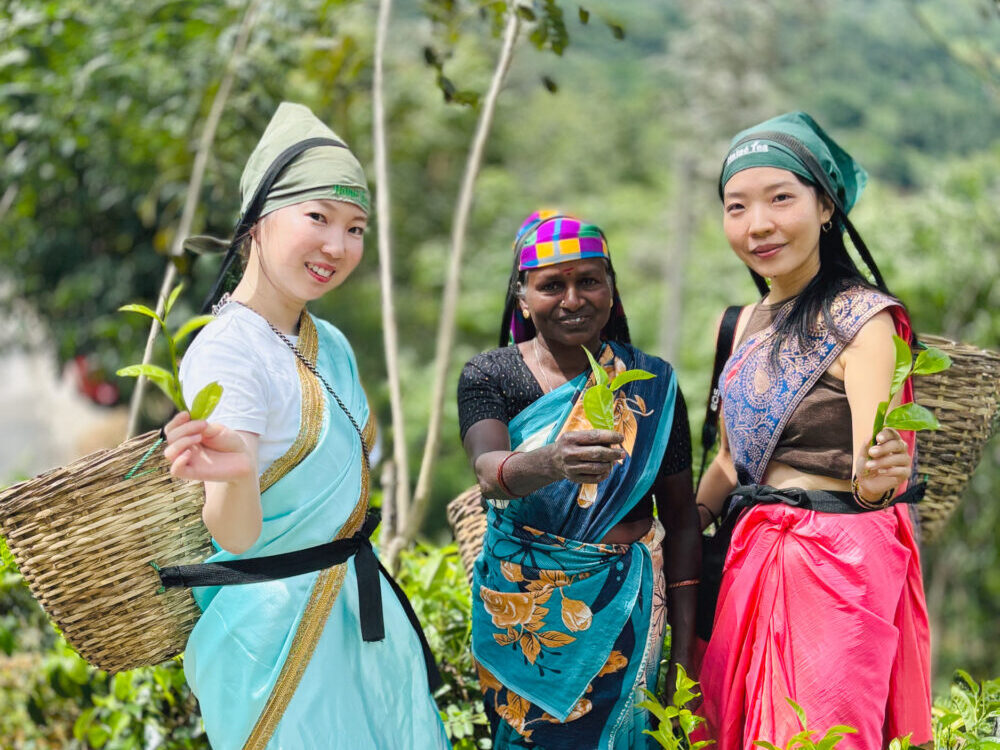 紅茶工場の生産ラインを見学できる場所は数多くありますが、茶摘み体験ができる場所はそれほど多くありません。簡易とはいえ、サリーが着られるオプションがあるのもうれしいポイント。